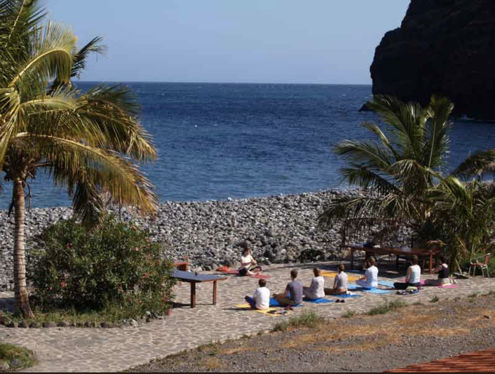 Diese Woche bietet die Möglichkeit mit einem Rundrum Wohlfühlprogramm ganz tief zu entspannen und mit deinem Herzen in Verbindung zugehen. Im Yogaraum hören wir das Meer rauschen oder sehen am Strand bei der Morgenmeditation die Sonne aufgehen. Du praktizierst jeden Tag 2x Yoga, morgens kraftbringendes Yoga, jedem Tag einem Chakra gewimet und abends die 5 Elmente Form. Diese noch sehr unbekannte Yogaform spielt mit dem Spannungsgefüge zwischen Himmel und Erde, und stammt aus den hohen Lagen des Himalya.  Die Yogaeinheiten spielen mit den 5 Elementen Erde, Wasser, Feuer, Luft und Akashasa , dem unendlichen Raum. Es ist ein unbeschreibliches Erlebnis, die Form in dieser Umgebung,  am Meer, an der frischen Luft und auf vulkanischer Erde zu praktizieren. Ich selbst habe die Form vor vielen Jahren auf Gomera kennengelernt. Die Morgensequenz ist eine 1,5 Stunden lange klassische Hatha–-Anahata-Flow-Yogaeinheit mit viel Pranayama und Meditation. Jeder morgen ist einem Element gewidmet. Diese Woche ist auch sehr gut für Yogalehrerinnen geeignet, die etwas Insperation für ihre Unterrichtsroutine suchen und die 5-Elementeform noch nicht kennen. Der Donnerstag ist ganz frei für Ausflüge nach San Sebastian oder ins Valley Gran Rey
